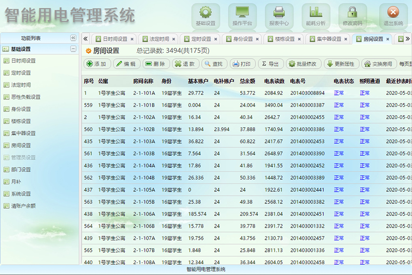 房間調(diào)換進(jìn)行數(shù)據(jù)轉(zhuǎn)換:當(dāng)學(xué)生調(diào)換房間后,系統(tǒng)計(jì)算機(jī)上能對(duì)學(xué)生宿舍的剩余電量進(jìn)行數(shù)據(jù)轉(zhuǎn)換,并且支持個(gè)別、批量房間進(jìn)行數(shù)據(jù)調(diào)換;