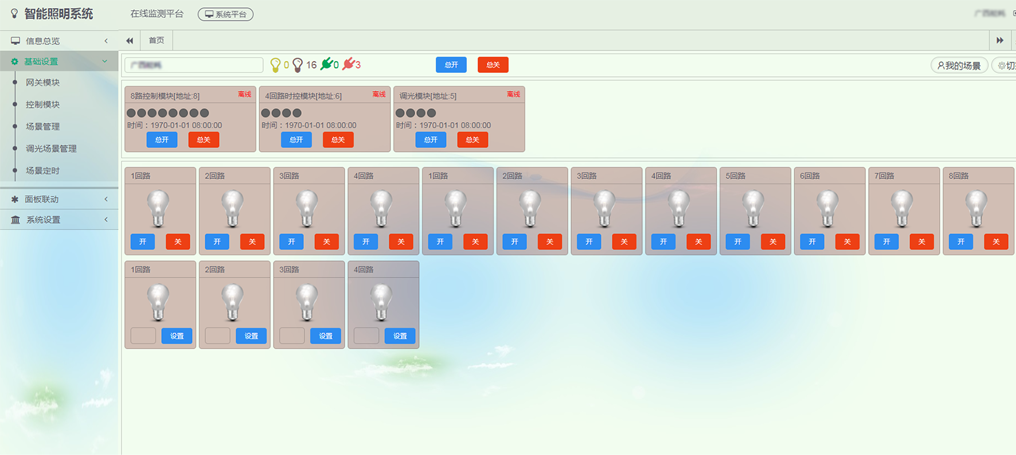 可實時反映現(xiàn)場燈具的實際開關(guān)狀態(tài)并記錄,可查詢各個回路歷史工作狀態(tài);